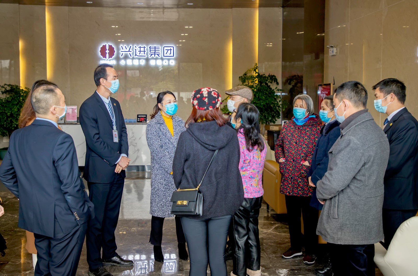 3月4日,在業主委員會與業主的共同努力下,錦旗與慰問物資到位。興進集團副總裁羅捷女士,興進物業公司總經理王永忠先生,興進物業公司人力行政總監陳健先生,興進·嘉園物業項目經理呂群財先生、業委會周主任及業主代表出席授旗捐贈儀式。