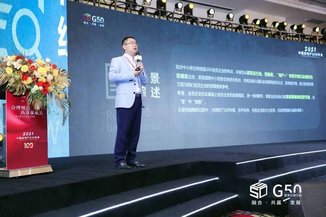 大會(huì)現(xiàn)場(chǎng),G50 商學(xué)院院長(zhǎng)、博志成總裁吳會(huì)鵬發(fā)布了《G50企業(yè)發(fā)展報(bào)告》,這是G50專家智庫(kù)落地的成果之一,從政策、行業(yè)、投融資,以及地產(chǎn)+的轉(zhuǎn)型升級(jí),組織生態(tài)的建設(shè)等方面展開系列研究,結(jié)合G50會(huì)員企業(yè)的特點(diǎn),針對(duì)董事長(zhǎng)和核心團(tuán)隊(duì)關(guān)注的焦點(diǎn),給會(huì)員企業(yè)提供值得借鑒和參考的研究,護(hù)航會(huì)員企業(yè)的持續(xù)增長(zhǎng)。