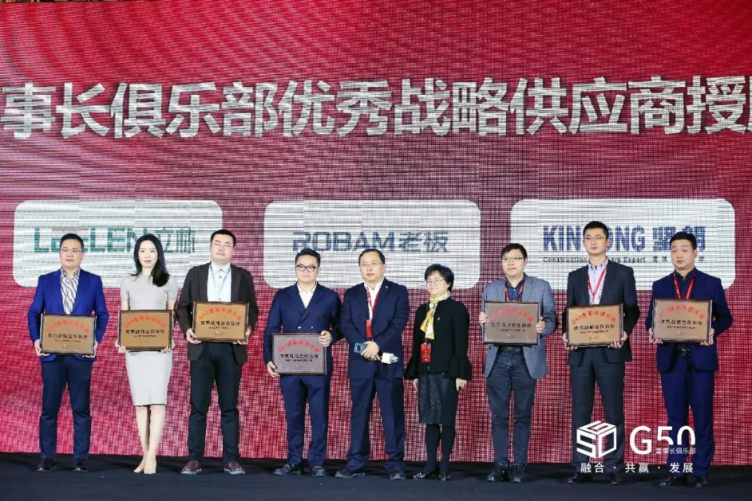 廣州光日電梯工業(yè)有限公司、九牧廚衛(wèi)股份有限公司、杭州老板電器股份有限公司、廈門立林科技有限公司、深圳市泰和安科技有限公司、天津萬(wàn)高電力設(shè)備有限公司、廣東堅(jiān)朗建材銷售有限公司七家集采合作伙伴被授予"G50優(yōu)秀戰(zhàn)略供應(yīng)商"稱號(hào)。